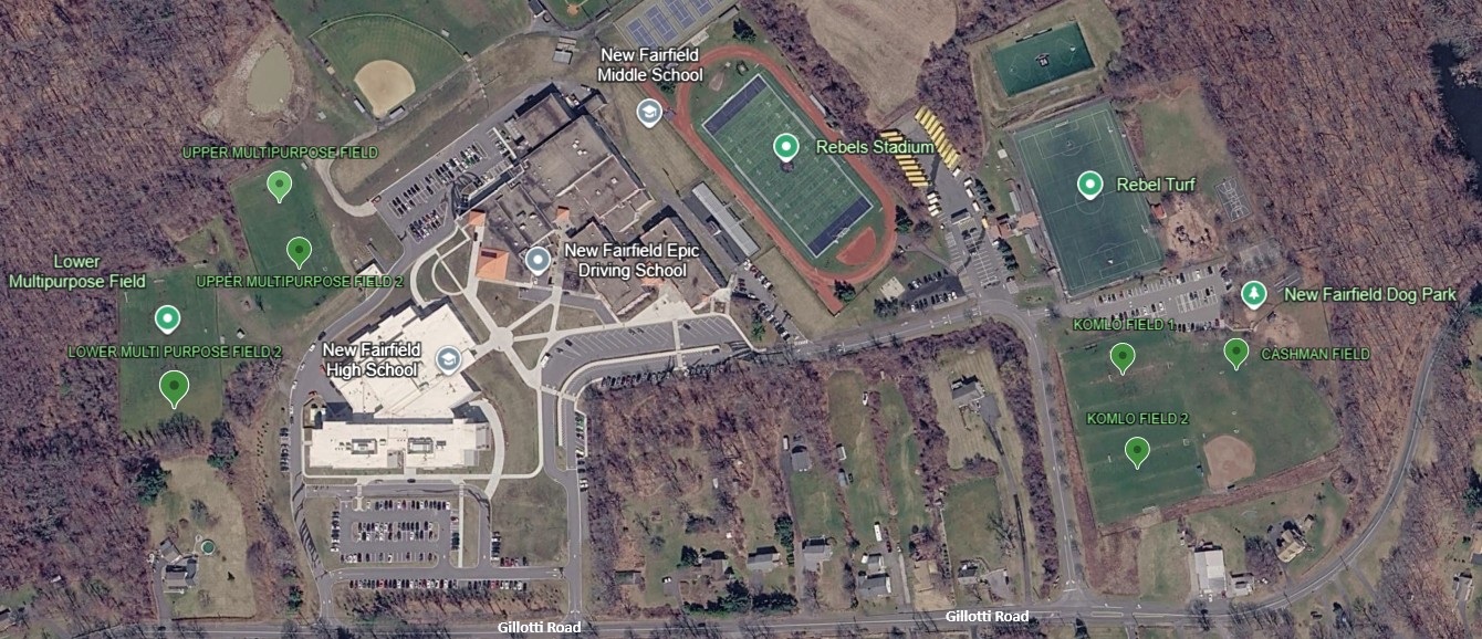 The soccer fields in New Fairfield are located on the campus of the Middle School and High School.